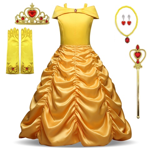 Robes de Déguisement Princesse Belle pour Enfants Filles, Costumes de Cosplay pour Fête d'Anniversaire La Belle et la Bête