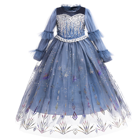 Robe de soirée pour enfants fille Elsa Sequins Long Sleeve Frock Skirt Gown for Kids