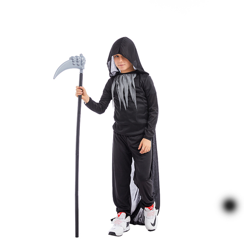 ชุดฮาโลวีนเด็กชายผู้เก็บเกี่ยวเครื่องแต่งกายฮาโลวีนเด็กชุดฮาโลวีน Fiend Azrael ชุดความตายพร้อมเสื้อคลุมมีฮู้ด